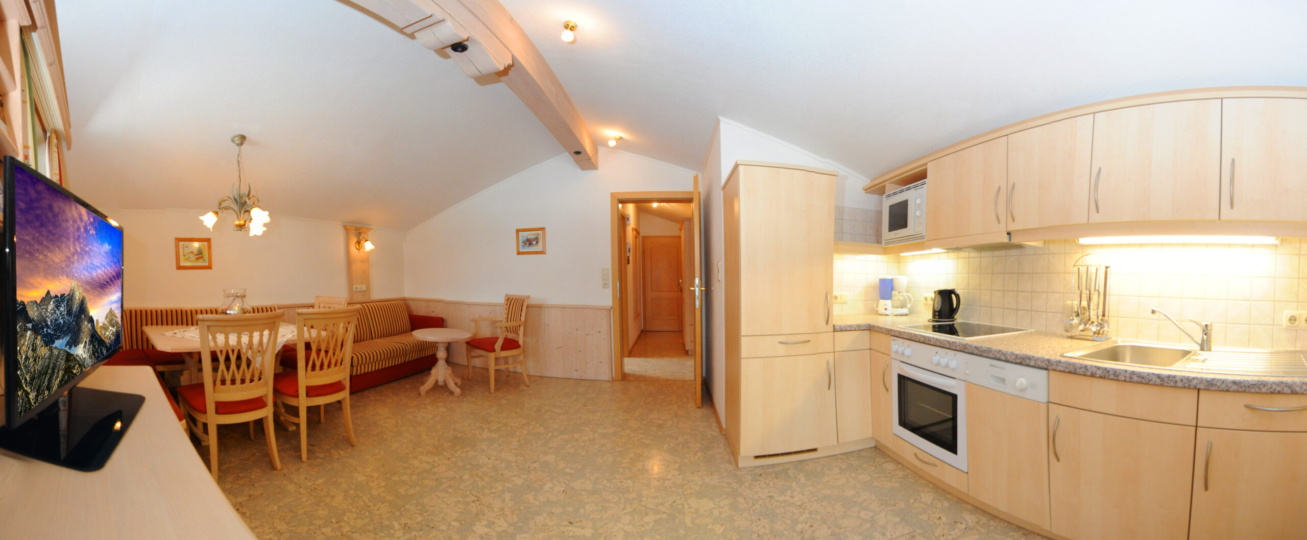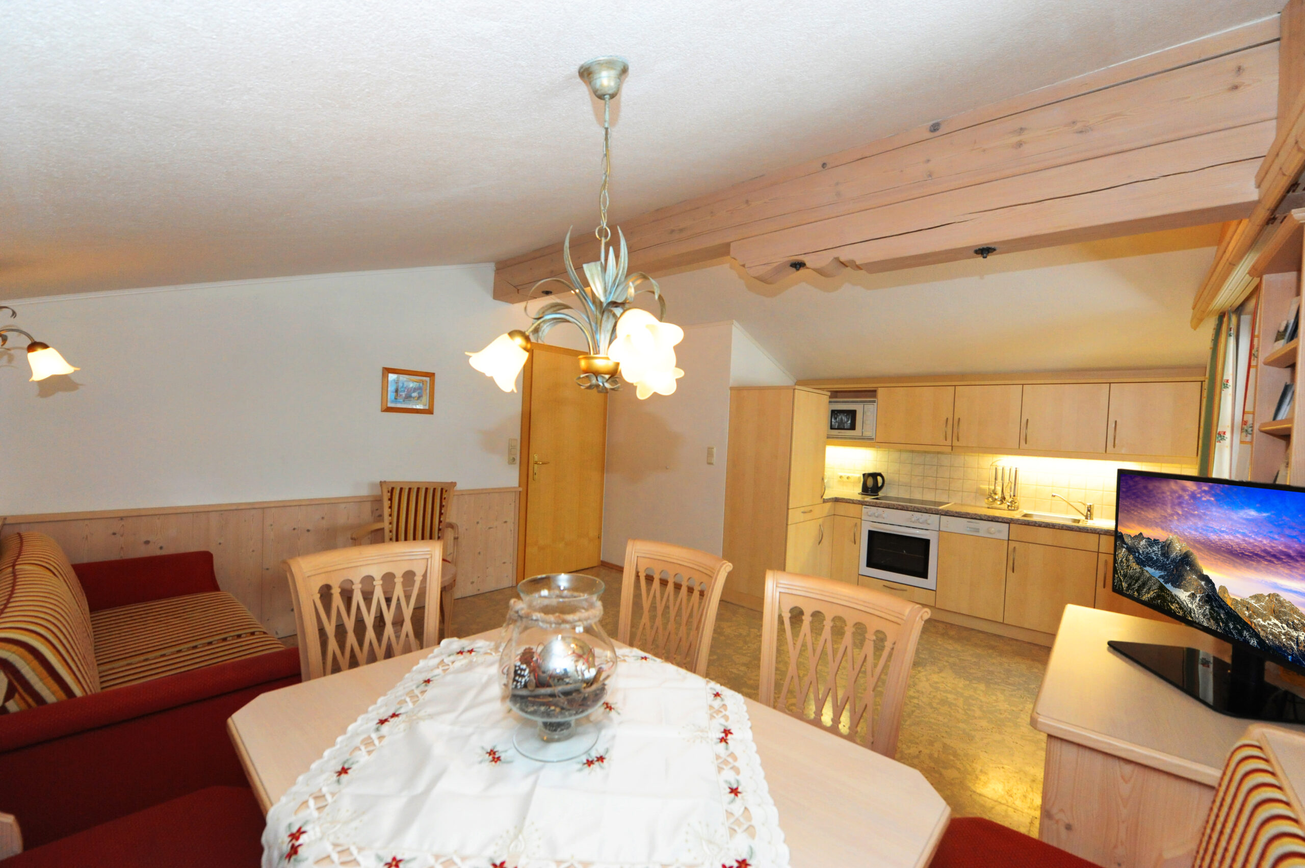 Bettwäsche ist im Preis inkludiert und alle Betten und Ausziehcouchen sind überzogen. Die Küche ist ausgestattet mit einem Herd, einem Backrohr, einer Mikrowelle, einem Kühlschrank und einer Kaffemaschine. Ein vollständiges Inventar zum Kochen, sowie Geschirrtücher sind im Appartement vorhanden. 2 Handtücher werden im Bad jewels pro Person zur Verfügung gestellt.