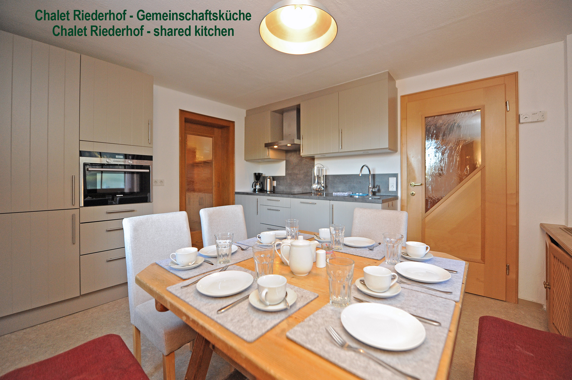 Im Erdgeschoss befindet sich eine Gemeinschaftsküche die von allen Gästen des Chalets genutzt werden kann.